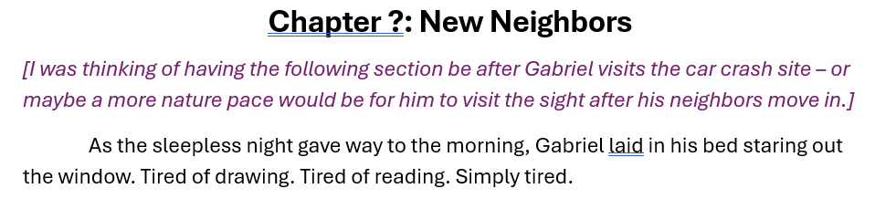 As I’m compiling all these sections in one doc, I use Hemingway bridges to bridge two sections of writing that may not yet connect. In these bridges, I typically address three questions: